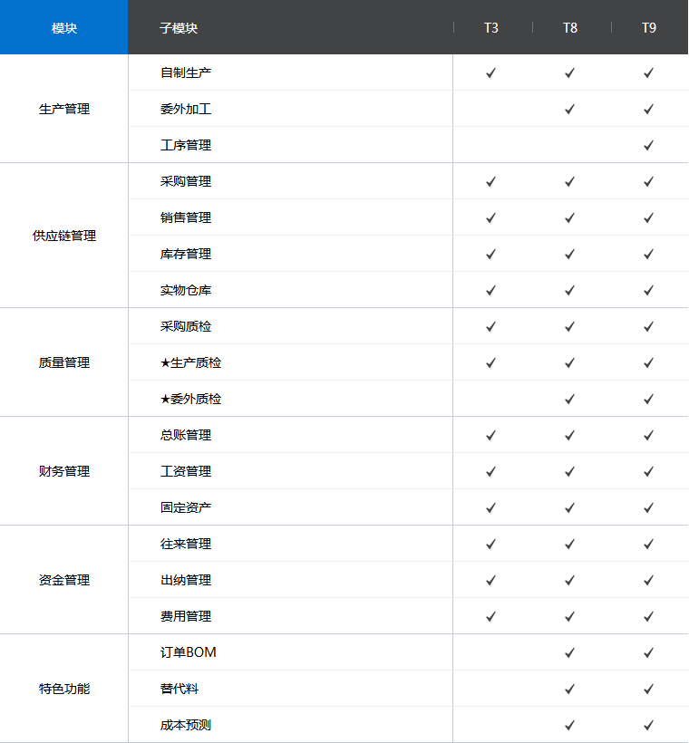 功能对比表